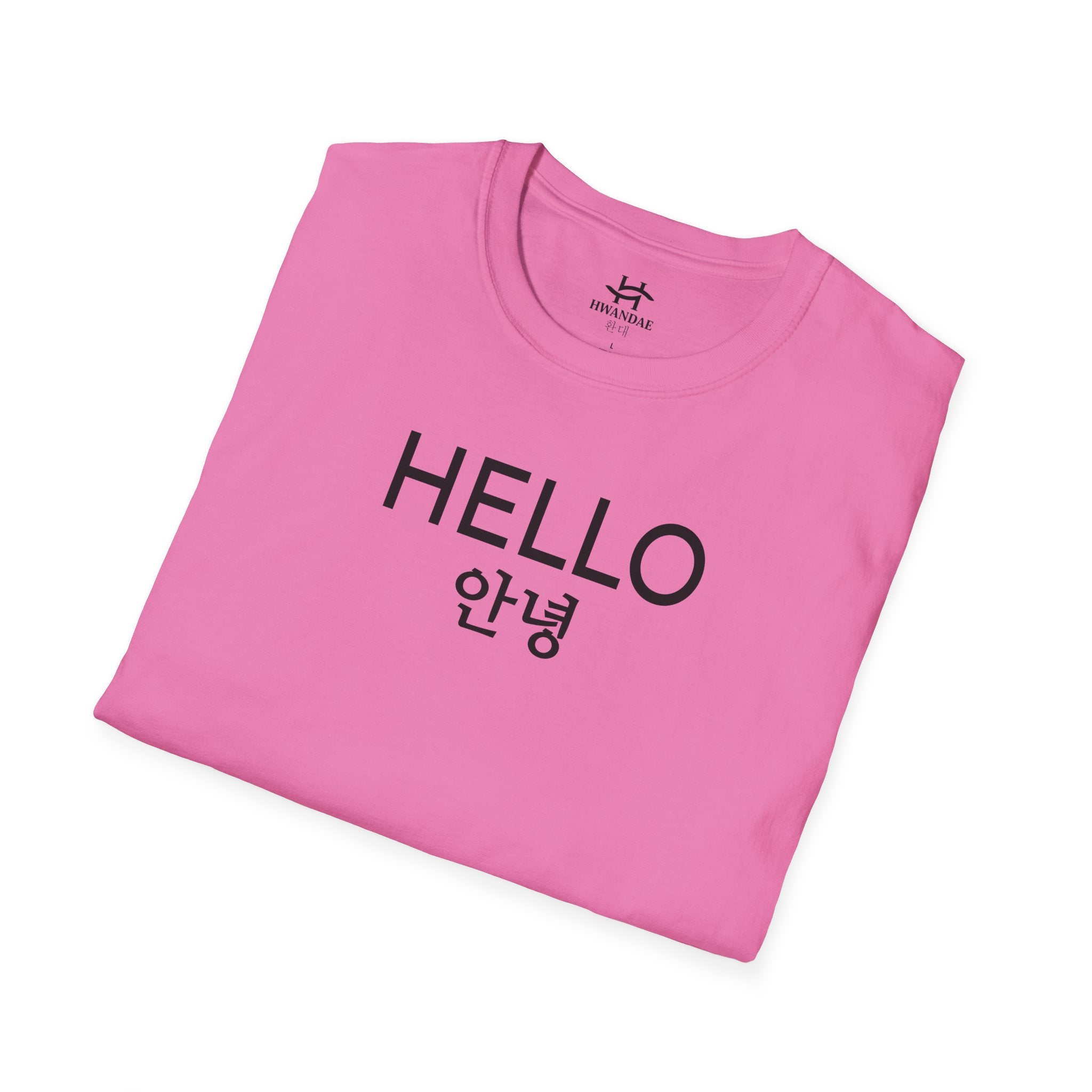 A unisex softstyle T-shirt saying HELLO, in Korean and English - What more would you want than one of the most common words across your chest!?